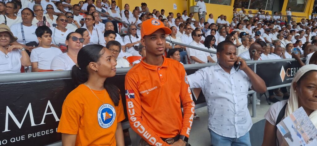 Si Santiago, RD. — En ocasión de la celebración del Jueves de Corpus Christi, la Defensa Civil de Santiago coordina el operativo especial de asistencia y prevención en el Estadio Cibao, donde se desarrolla la tradicional misa organizada por el Obispado de Santiago.