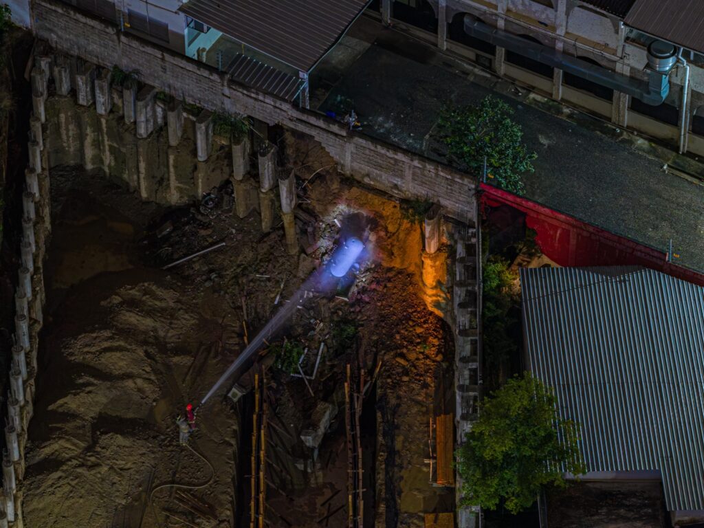 El Cuerpo de Bomberos de Santiago informa a la población y a los medios de comunicación que, la noche de ayer, alrededor de las 9:00 p.m., producto de los constantes aguaceros registrados en la ciudad, se produjo un deslizamiento de tierra en la parte trasera del Hospicio San Vicente de Paúl, un asilo de personas mayores.